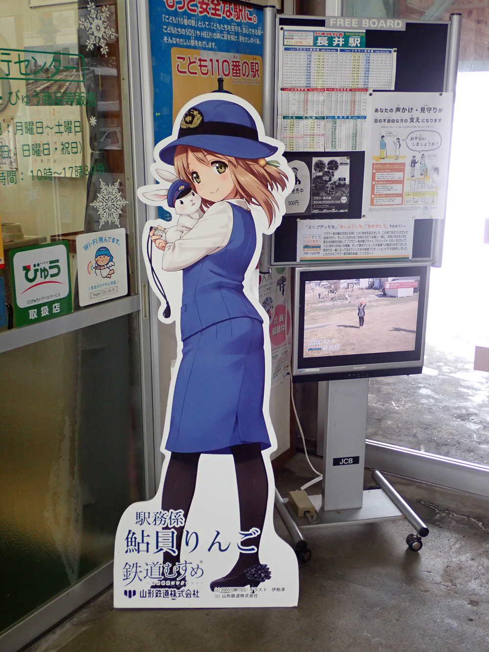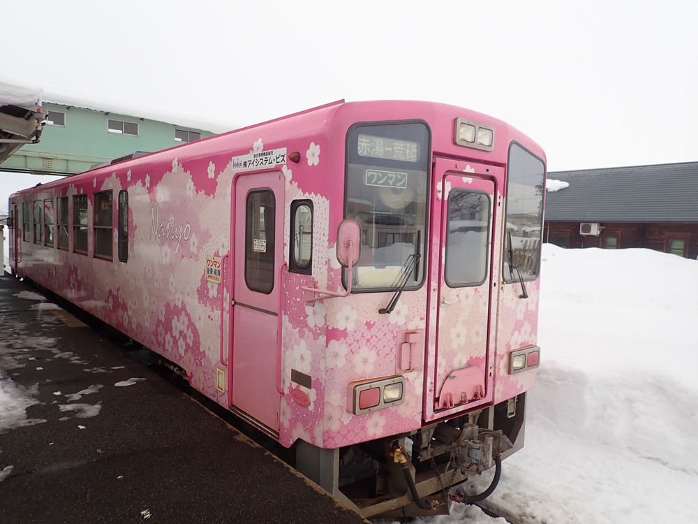 つなげて!全国"鉄道むすめ"巡り その17 山形鉄道 (完結) 山形はいったことないのでいつ行くか考え、雪多いところだしせっかくならと雪の時期を選択 しかし前の週に除雪車故障で運休・・・ 代わりにいつ行こうかと思っていたら無事再開 まずは乗り潰しのために荒砥駅へ 折り返して目的の長井駅 これで丸1年かけた「つなげて!全国”鉄道むすめ”巡り」を終了 そばを食べたり道の駅に行ったりと時間を潰しながら 今度はもっちぃに会いに宮内駅へ 初もっちぃ 後ろ向いていてこっち向いてくれない・・・・ せっかくのなので熊野神社にも足を伸ばす Googleの検索で進むとおかしなところに誘導されたが 小学校の近くに立て看板があり無事到着 うさぎ?当然見つからなかった双眼鏡か望遠カメラがほしいところ 駅員に見送られて赤湯に戻る 山形で泊まり翌日は仙台に抜けて 阿武隈急行で福島へ 福島交通にも乗ってから帰宅 [0回]PR