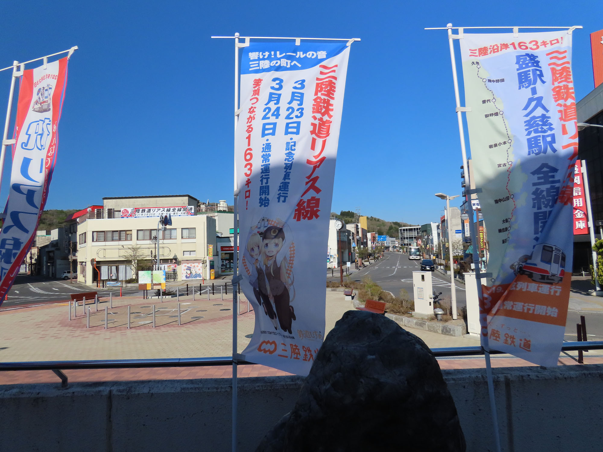 あつめて!全国"鉄道むすめ"巡り その7 仙台市交通局・仙台空港鉄道・阿武隈急行+南部縦貫鉄道・三陸鉄道 元々連休に行く予定だった南部縦貫鉄道と三陸鉄道に急遽追加 仙台で途中下車して荒井へ 急いで折り返し無事予定の列車に乗車 七戸十和田で自転車を借りて旧七戸駅へ みちの駅で昼食を食べつつ野辺地行きのバスを待つ 野辺地-八戸-久慈と移動 カメラが新しくなったので蕪嶋神社もしっかり撮影 翌朝久慈から直通で盛へ ツアー客が多く車内はいっぱい 宮古は15分ほど停車するので降りて駅舎撮影 一度減った車内が別のツアー客で再びいっぱいに ここから旧山田線 堤防の関係で思ったより海は見られなかった 盛からはBRT 気仙沼でポケモントレイン乗車 千厩駅で折り返して気仙沼からBRTで前谷地 そこから乗り換え仙台へ 最終日おとぎ街道号で仙台から丸森へ これで今回のめぐりも折り返しに 水郡線に乗るため郡山で降りたら 四季島遭遇 旗を貸してくれたのでお見送り 布製の旗は返して記念に紙製の旗くれた [0回]PR